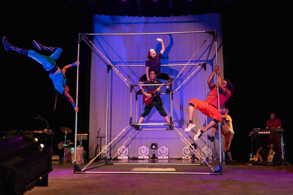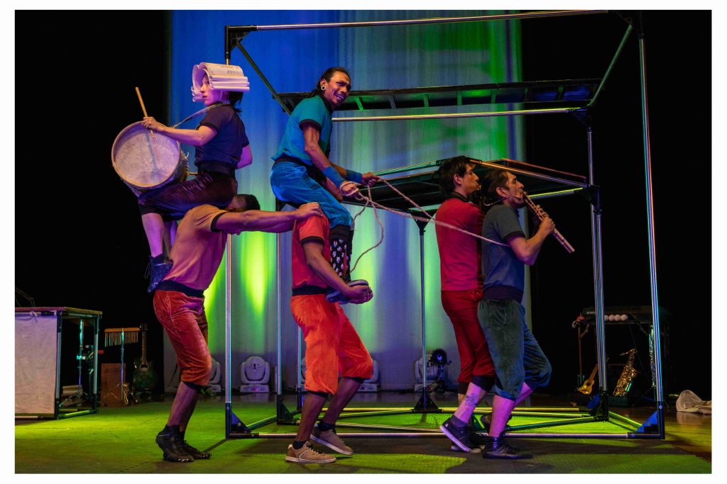 Utiliza lenguajes mixtos como el teatro, el circo, la música y la instalación plástica.